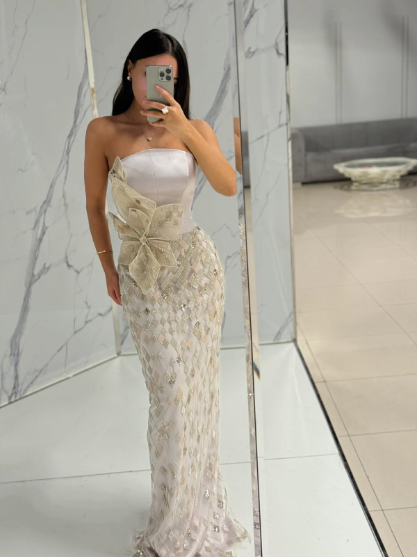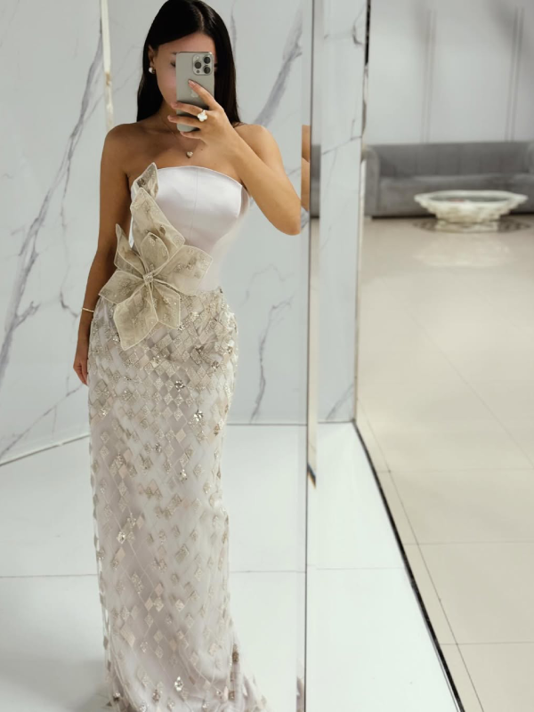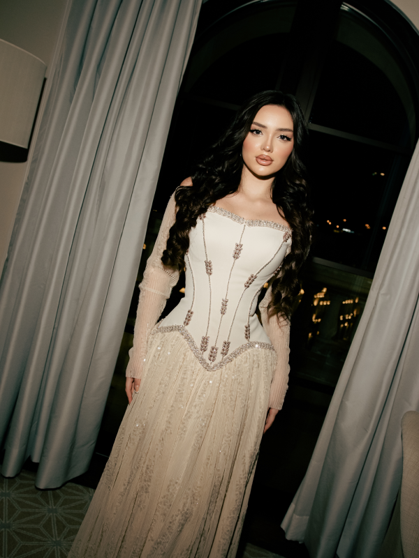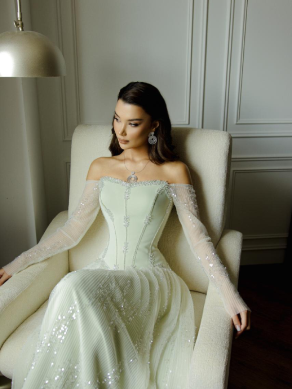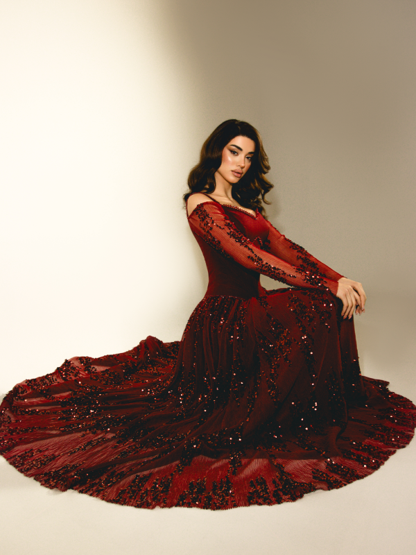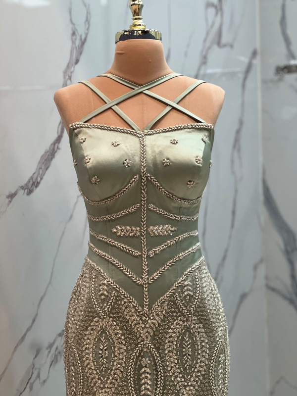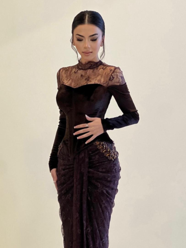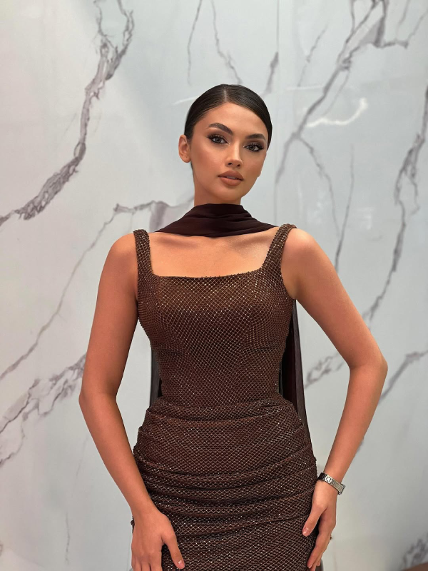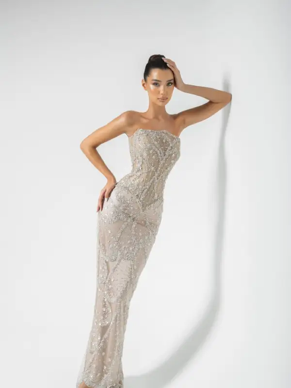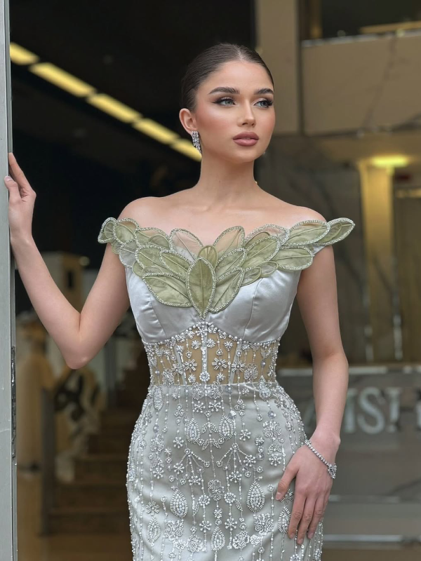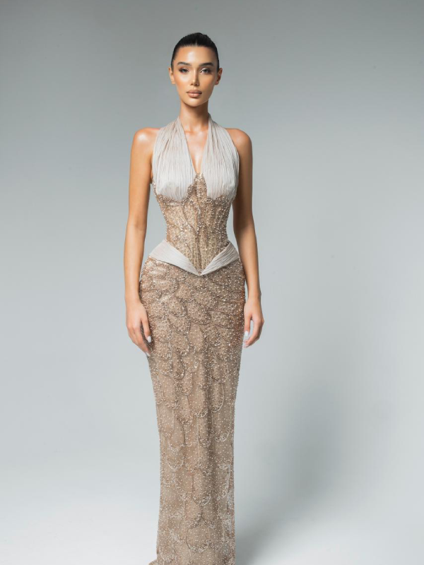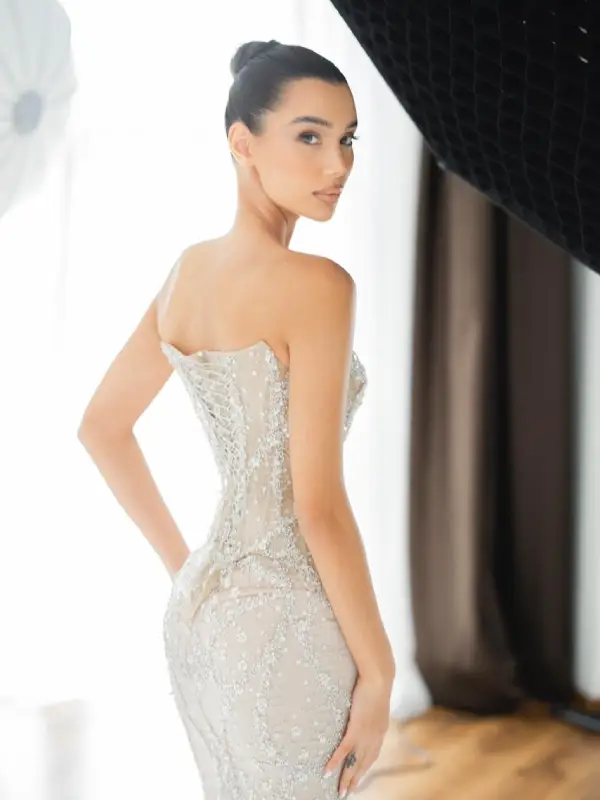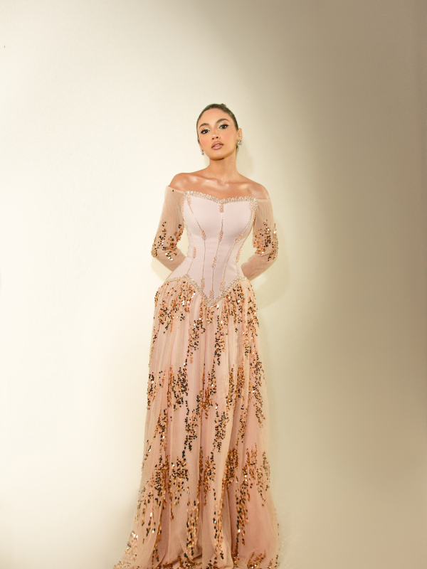Grace unfolds quietly in this timeless creation. Every movement feels like a soft expression of confidence.