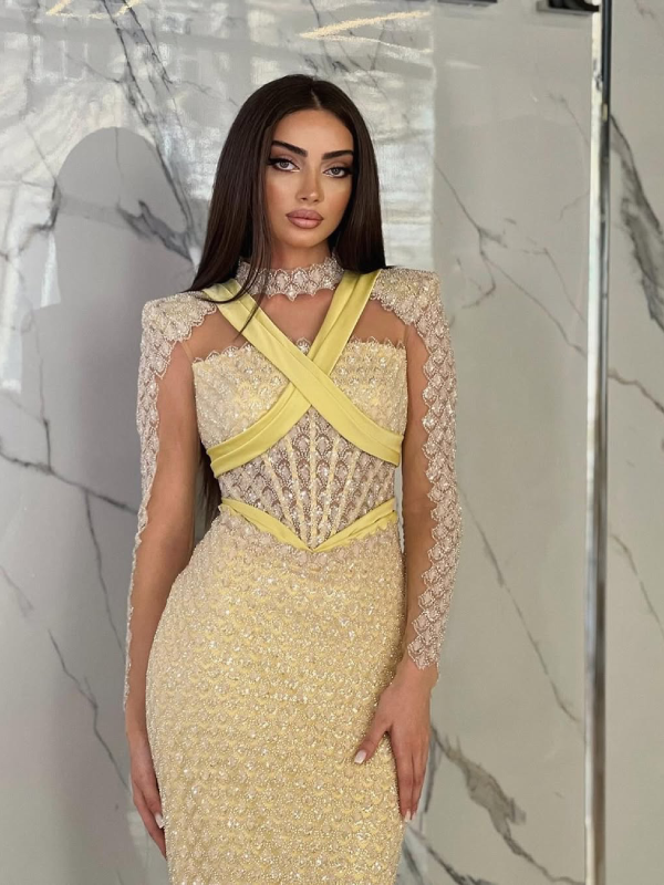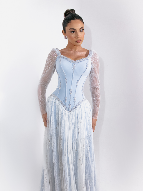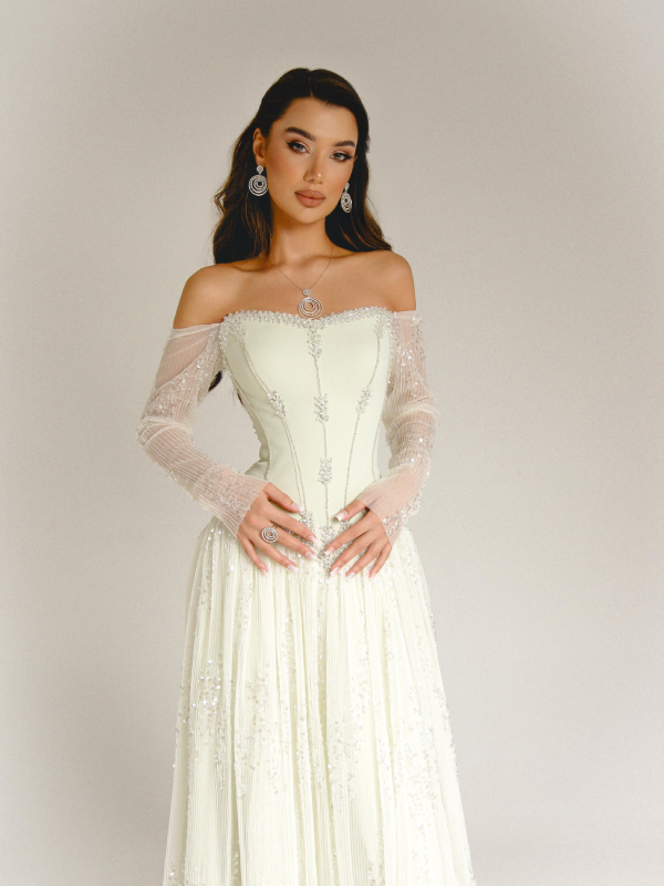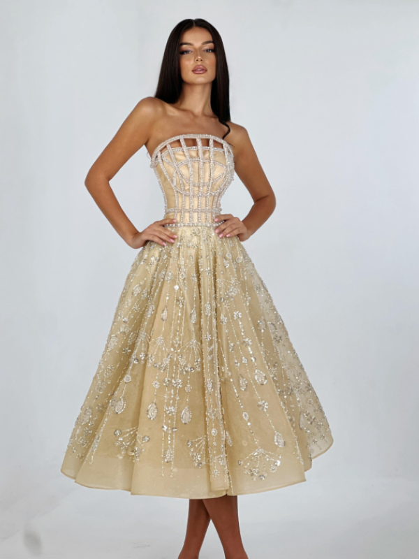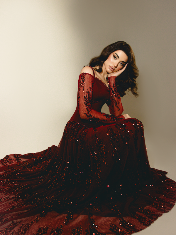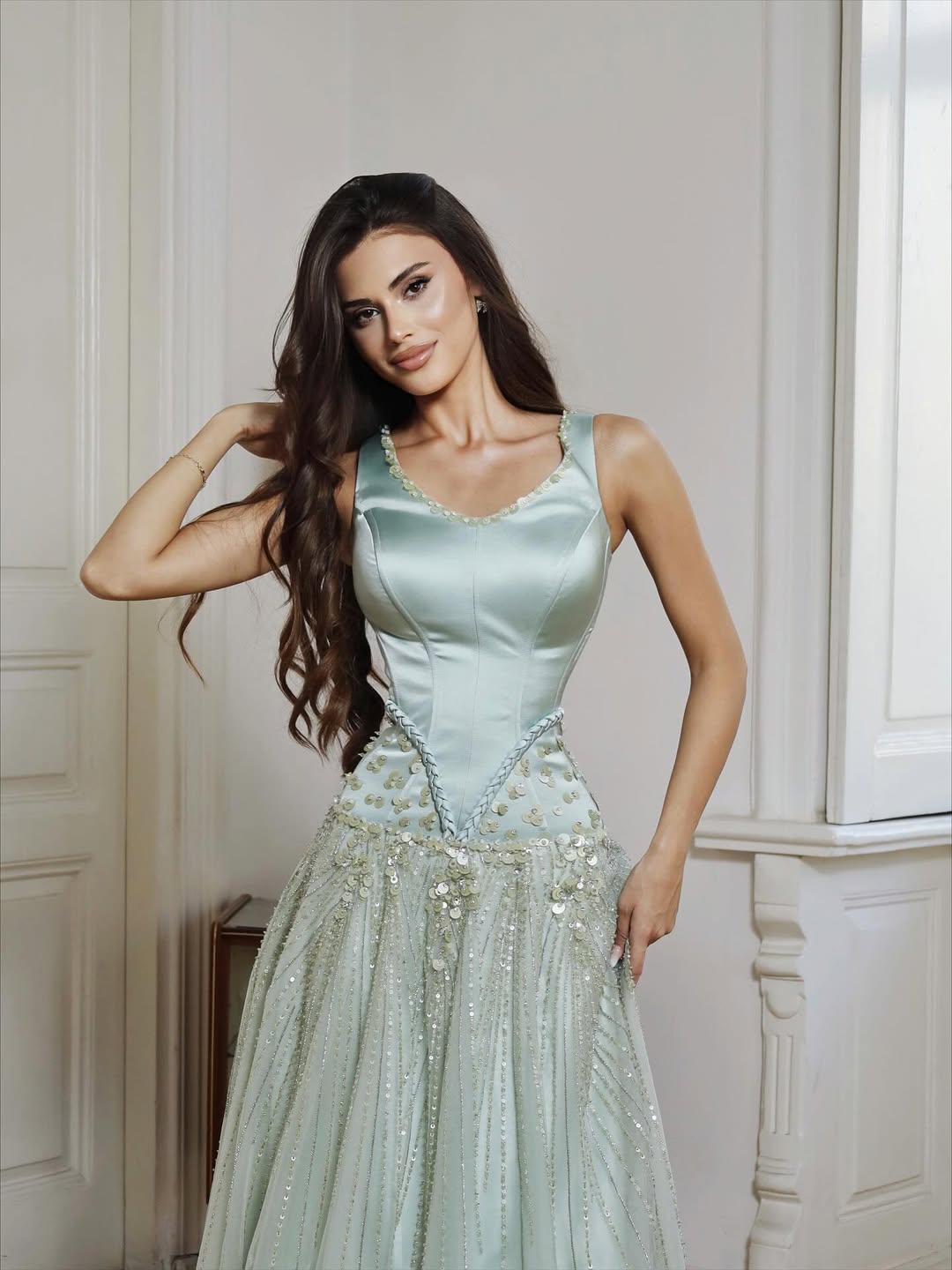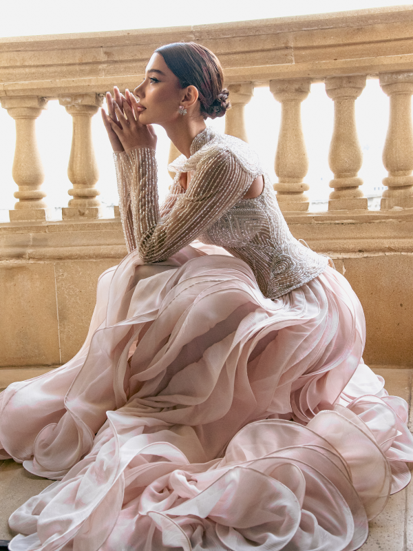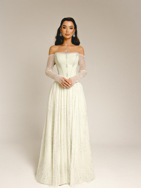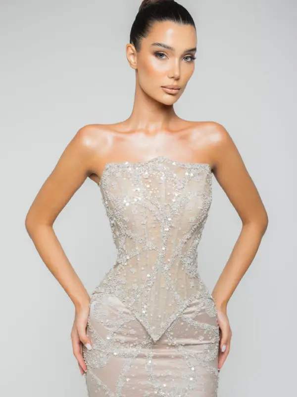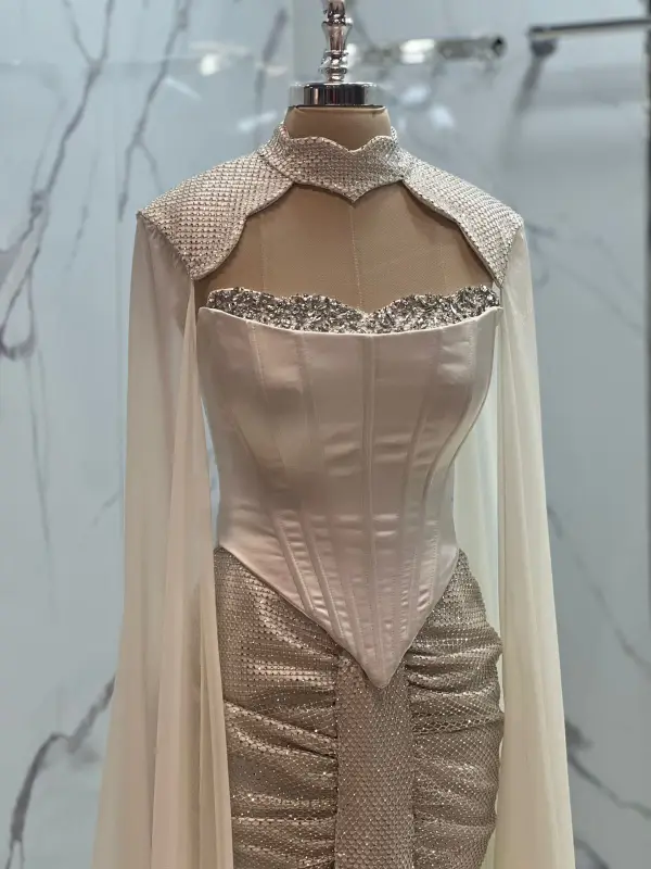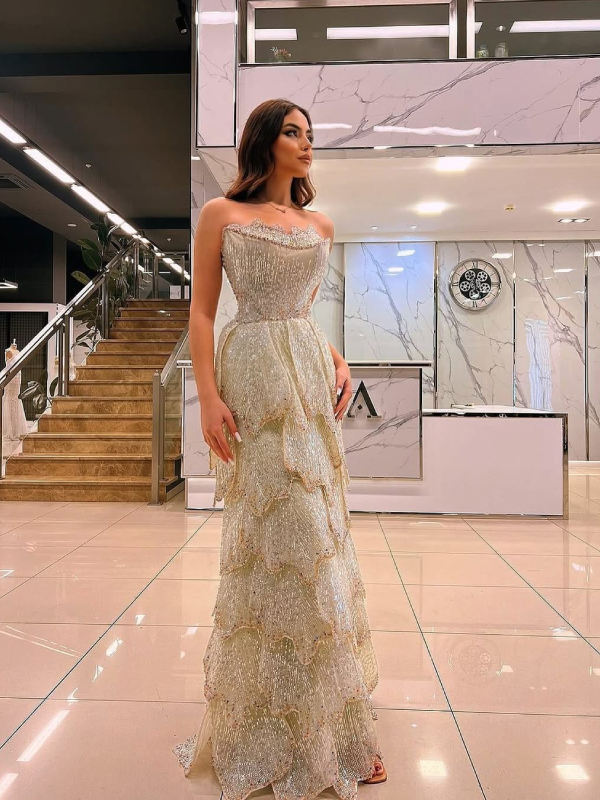 Grace unfolds quietly in this timeless creation. Every movement feels like a soft expression of confidence.